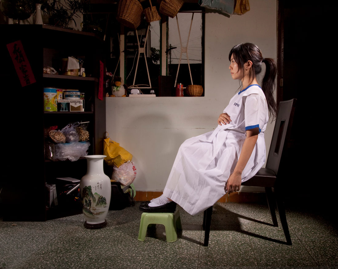 After finishing The Killers, I keep on studying paintings. I read through the history and found that the stories in paintings are familiar. Actually, nowadays we are repeating history, but in another way. So I started my idea of making this series of photos. Before being a photography student, I asked myself the question, “How long does a photograph live?” If a photo taken by a master, even just a snapshot, it lasts forever. But how about our snapshots? Do they live for 1 second for a glance? We tend to watch a photo, to look at a photo, to glance at a photo. Photography is not a fast food. Photographers spend months and years taking one photo. Is it a joke when it turns out the photo is worth watching for 1 second? Should we respect more? Besides playing with the content of the paintings, I adopt the presentation from the paintings. Titian paints a dog implying fidelity. Hans Holbein the Younger drew an anamorphic skull, encouraging us to read a painting from a different angle. Those tiny details enhance the readability of the pieces. Everything inside the frame does not appear by chance, nor does photography. The bra on the sofa is not an accident. It is a hint, a puzzle, a linkage for you to read, not only for six independent photos but also through six correlated paintings.